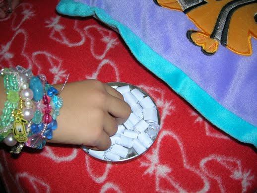 Ho fatto dei rotoli, così ho coinvolto i miei bimbi a fare questo giochino e Giadina ha voluto portare fortuna a . . . . .