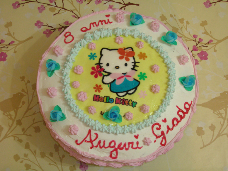 Giada ha scelto una torta decorata con la più famosa di adesso: Hello Kitty, ripiena di una crema leggerissima.