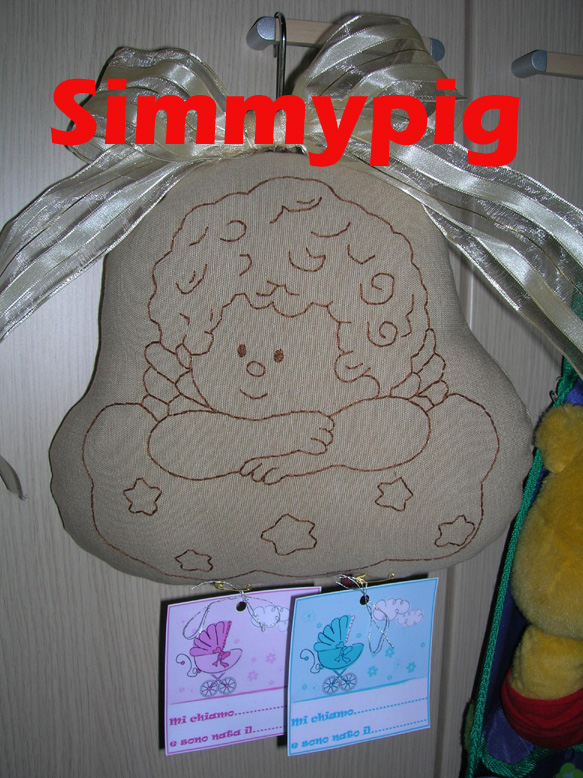 Questi angeli, ispirati da immagini Egan e Thun, sono stati stitchiati su lino grezzo; vi ho aggiunto un bigliettino,creato con qualche gioco di software e una passata di colla x decoupage.