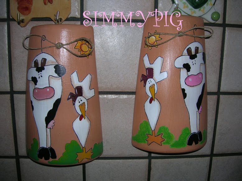 Queste due tegoline sono state create per mia mamma, appassionata fan di galline; e per mia zia, nonchè sorella, ricercatrice di nuove mucche;come presente per Pasqua e per ringraziamento per tutto quello che fanno per me !